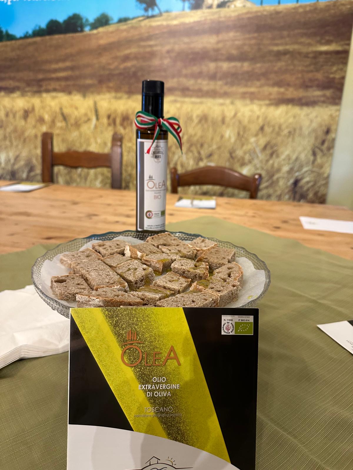 Le olive, raccolte con cura nei campi della Tenuta, sono state portate al Frantoio del Monte Pisano di Vicopisano (PI), dove hanno dato vita a un olio extravergine dal colore verde intenso, con riflessi dorati e un profumo che ricorda l’erba appena falciata, con sentori di carciofo.