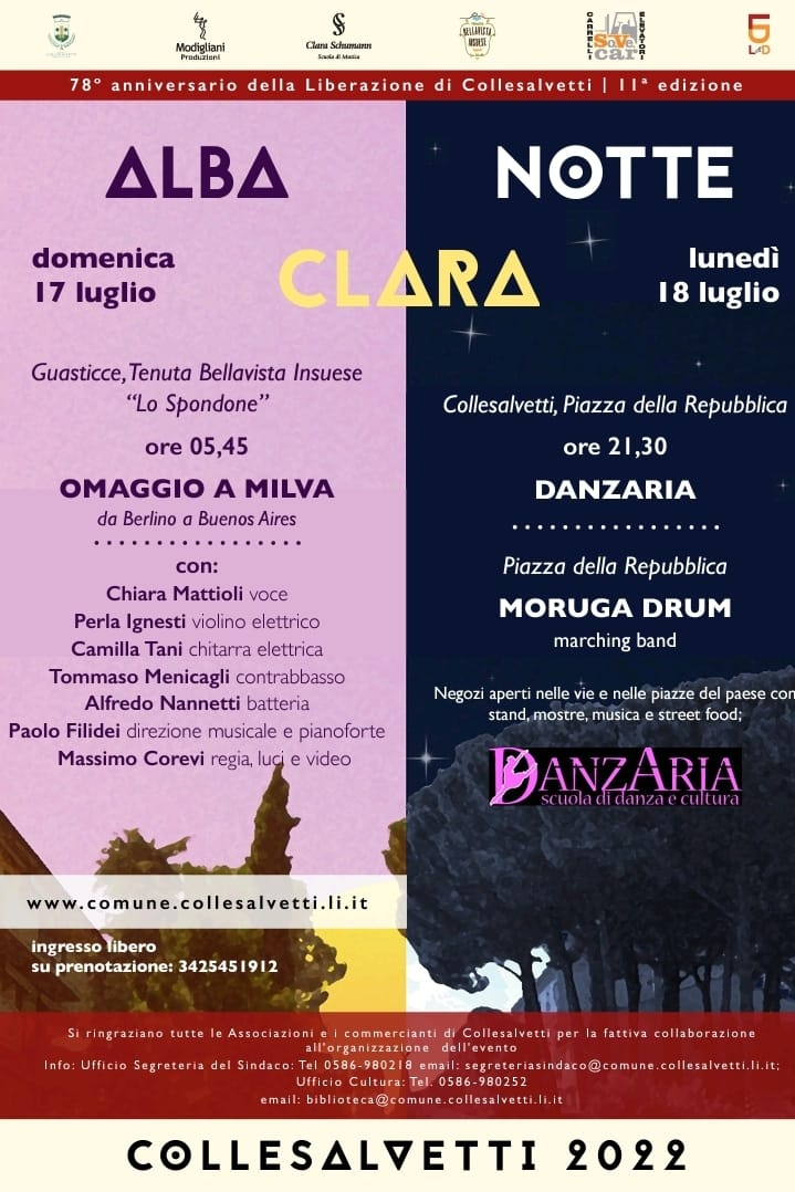In occasione del calendario di eventi organizzati dal Comune di Collesalvetti per il 78° anniversario della Liberazione, torna l’appuntamento con “AlbaClara”, l’evento artistico che unisce la musica d’autore all’emozione della nascita del sole sulle colline della Tenuta Bellavista Insuese.